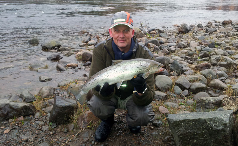 Som ni ser vart det en tur idag med. På en timme drilla jag 5st. Började med att tappa 3st. 4e drillningen var en öring på 1,3 kg. Tänkte släppa tillbaka den, tyvärr vart den för skadad av krokarna. Kunde ej rädda den tyvärr. Sen högg den på bilden. Fick en rolig fajt i den hårda strömmen. Vikt 2,7 kg. Inte ett hugg sista timmen. En annan fiskare som va där släppte tillbaka en liten. Tack för bild och håvning Sven Olsen. Svens Hemsida