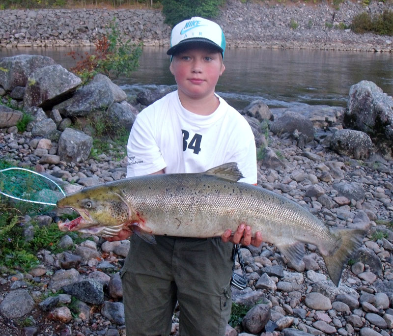 Grattis Sebbe till din 4e Lax i år. Togs på hällen på en tubfluga. Vikt 6,4 kg.