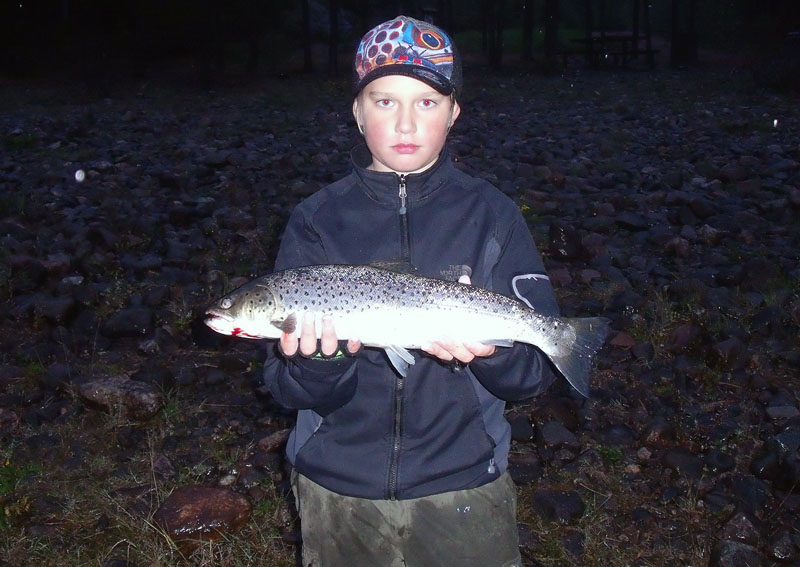Sebbe började med att tappa en fin öring på skeddrag. Sen tog han denna på bild på lysstav.