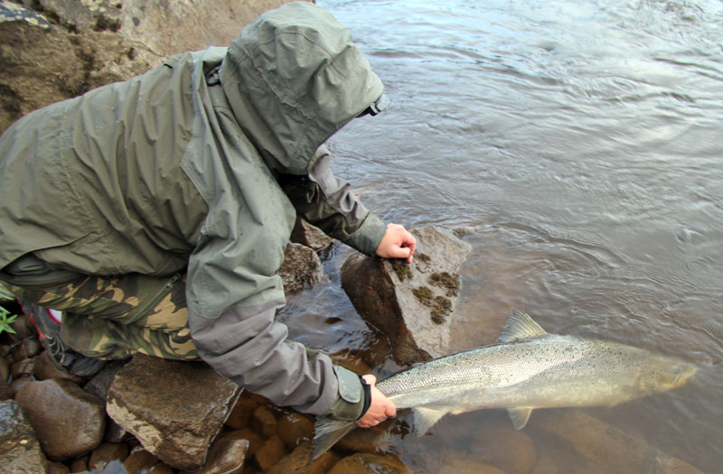 Hade ingen håv, fick hjälp av en flugfiskare att ta upp den.