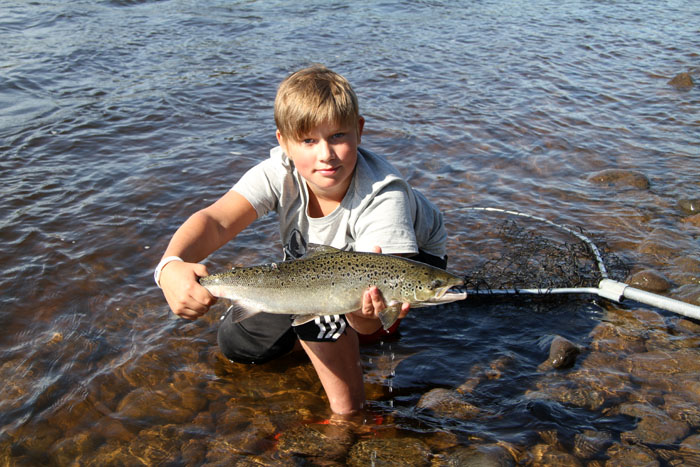 Började dagen med en tur på hunsen. Va lite för lite vatten för att fiska där. Lyckades felkroka en liten Lax som frugan fick drilla in. Sebbe återutsatt den. Bilden nedan. På kvällen drog jag till inloppet. Efter ca 15 min hög det på flugan. Fick drilla den en stund, sen släppte den. (kändes som en öring) Ca en timme senare va det dags igen. Fick på en kanon fin lax runt 8-9 kg men som tyvärr satt fel. Bara att släppa tillbaka. Vid 22 gick jag och Alexander och fiska gös. Redan på 3e kastet högg första gösen för mig. 3,05 kg. Sen tog Alexander sin på 2,05. Jag fick 2st till gösar. Vi behöll 3st. 3e vägde 1,7 kg. Den vi släppte tillbaka vägde ca 1,3 kg.