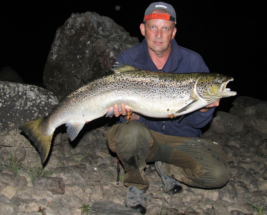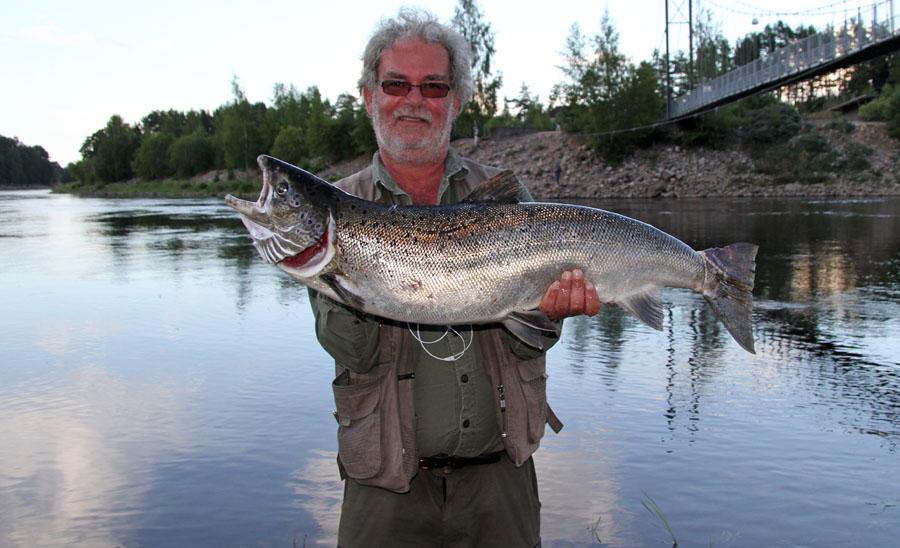 Jan Peter Näslund tog denna lax på första kastet på gubbhyllan. Vikt 10,35 kg.
