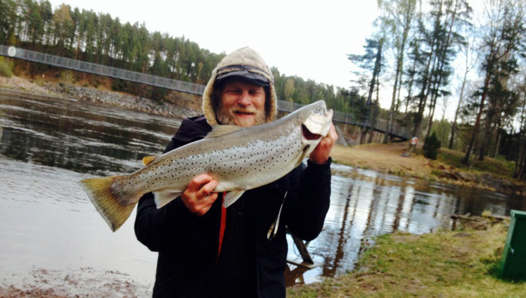 Öringen togs vid kanalutloppet. Vikt 2,5 kg. Sebbe va håvmästare som vanligt.