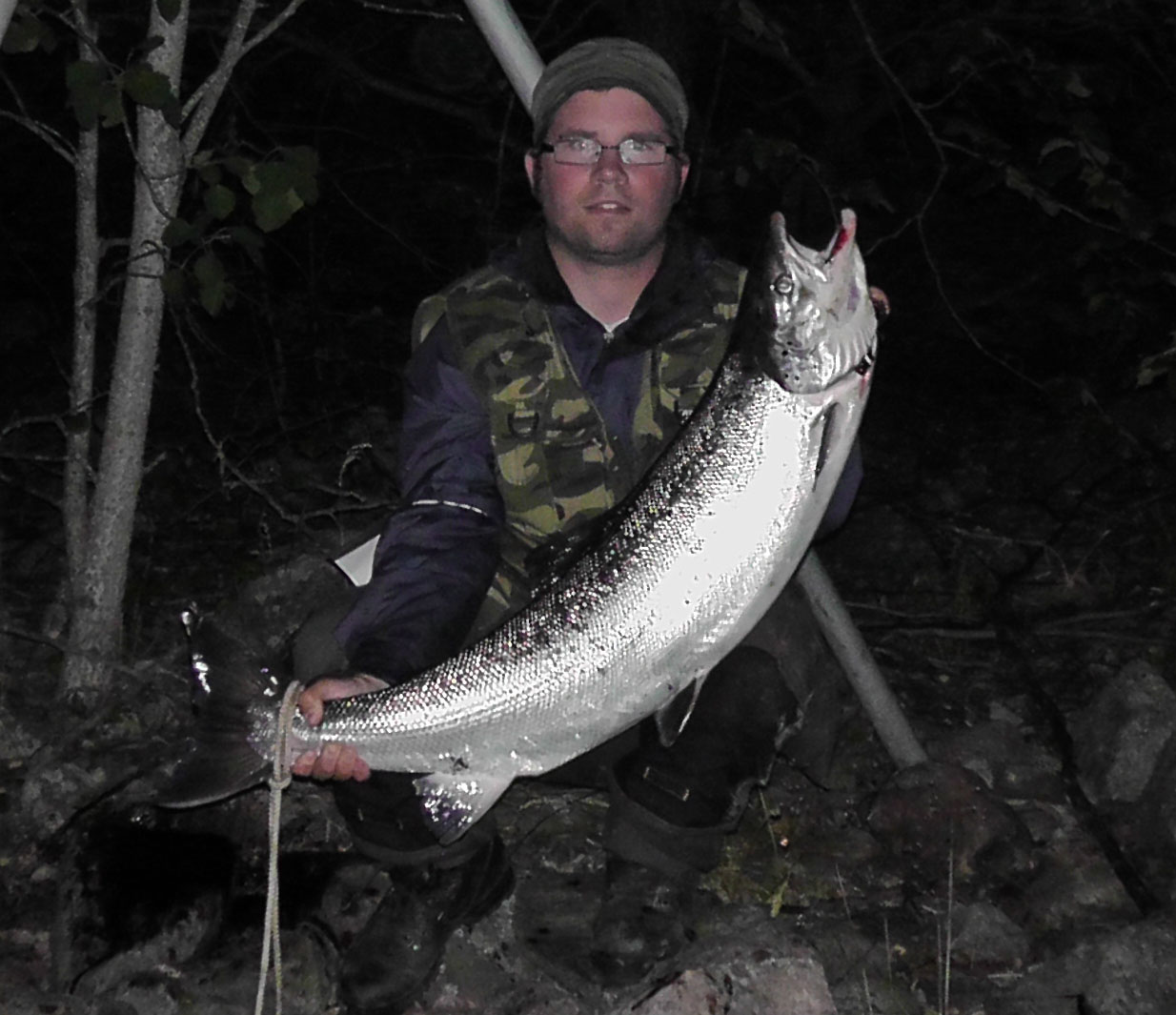 Stort grattis till minken Svedda. Tog sin 4e Lax 23:50 igår kväll. Vikt 6.8 kg Han tappade 2st laxar innan denna med.