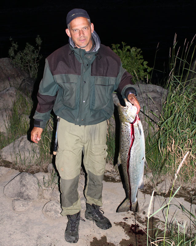 Bo Sköld kom ut på notören gjorde ca 5-10 kast och tog denna fina vildlax Vikt 9,0 kg. Bengt Zetterberg gjorde inte heller många kast så tog denna fina Havsöring, vikt 4,6 kg.