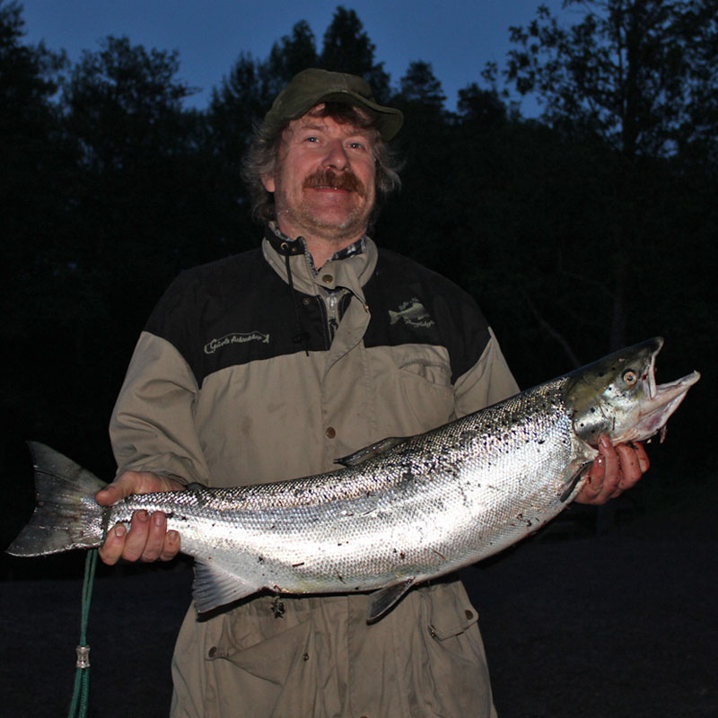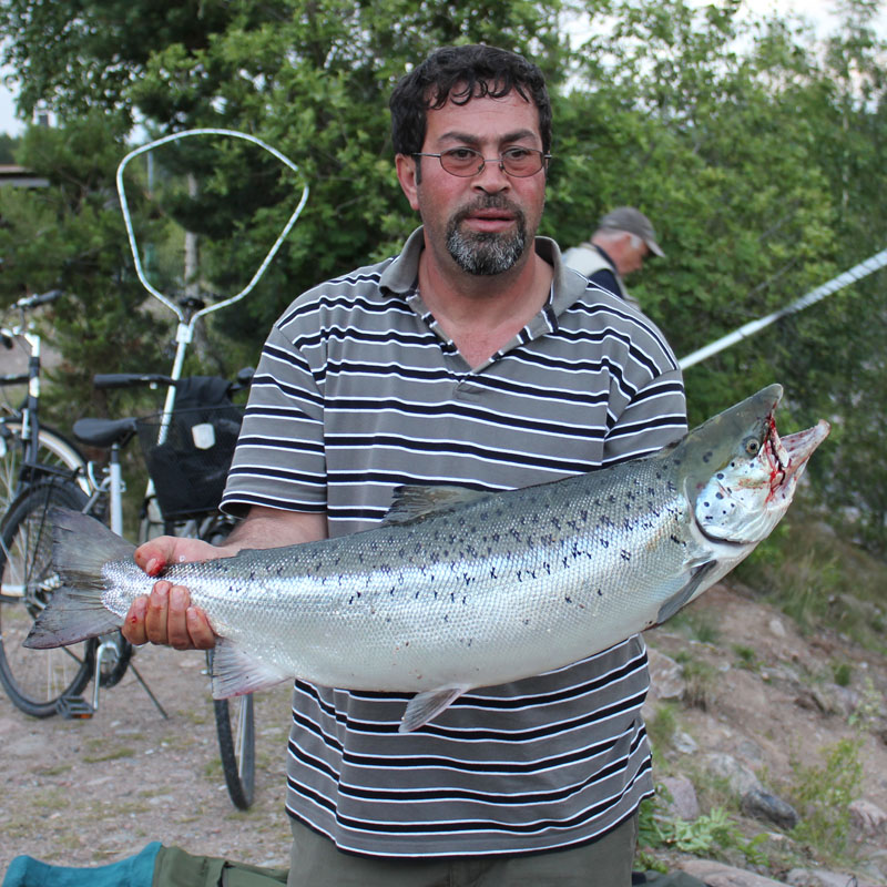 Stort grattis till Jörgen "Svedda" Svedlund som fick sin första lax för i år. Vikt 7,9kg