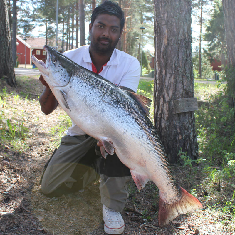 Den som tar första Laxen i maj kommer att få sitt namn på denna trälax. Detta startades 2011 av Älvkarleby Sportfiskeklubb. Trälaxen sitter hos Älvkarleby Sportfiske. (Kontoret)