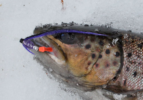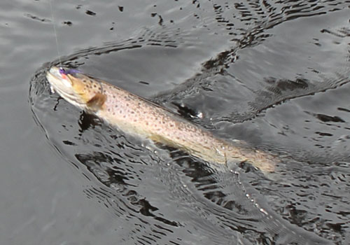 Min lila färgade epoxyfluga verkar vara riktigt bra. 3e kastet med flugspö.