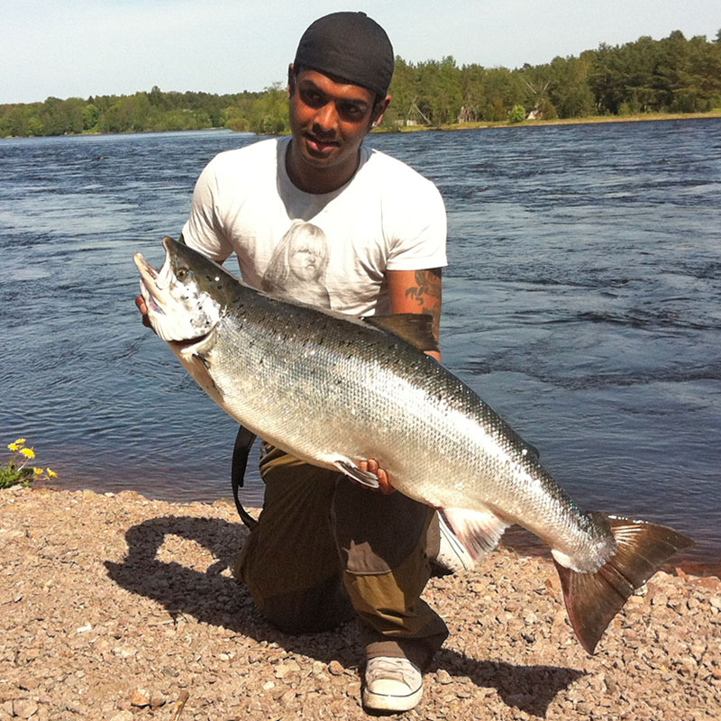 Bara att lyfta på hatten för Simon Hansen som tog första stor laxen även i år.