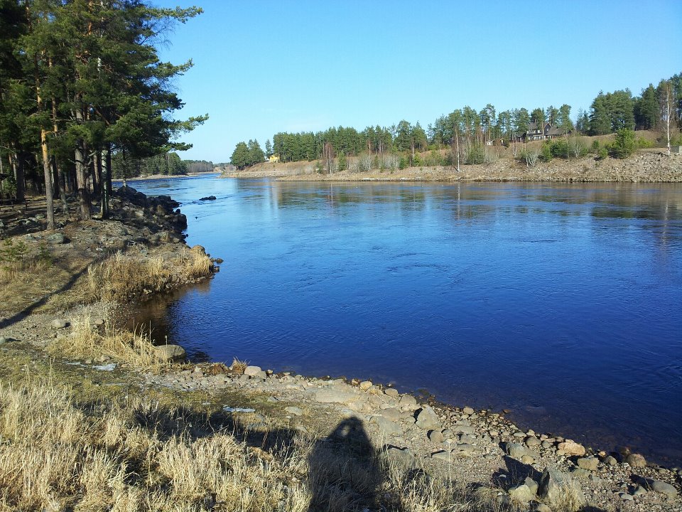 Nästan isfritt vid älven, så det kommer att finnas gott om fiskeplatser. Det kommer att gå 200 - 300 kubik på premiären. Och Älven är nu öppen hela vägen ut till havet.